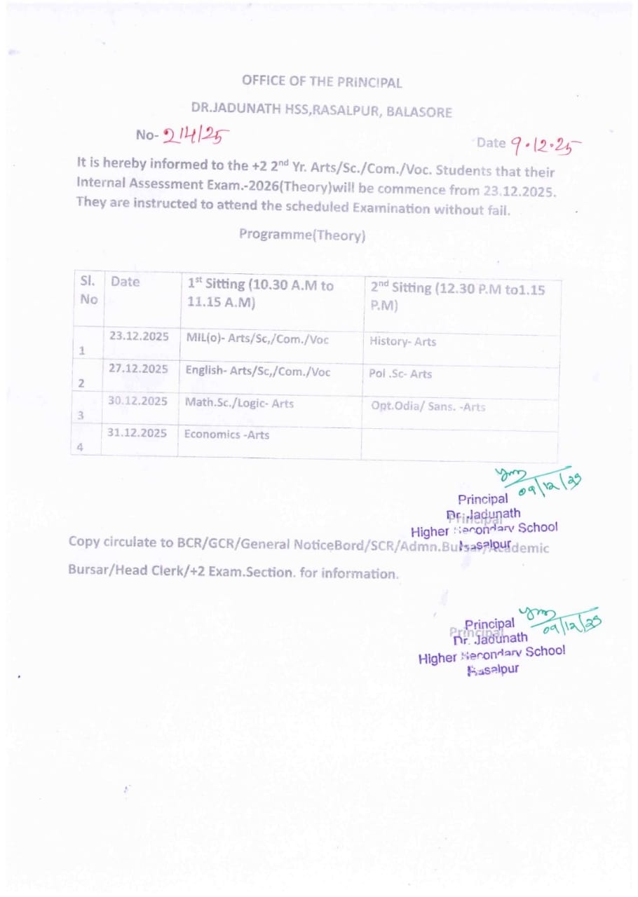 16 - 21-12-2025 > Class Suspended for +2 1st year arts ( Class Suspended for +2 1st year arts for internal assessment of +2 2nd semester )