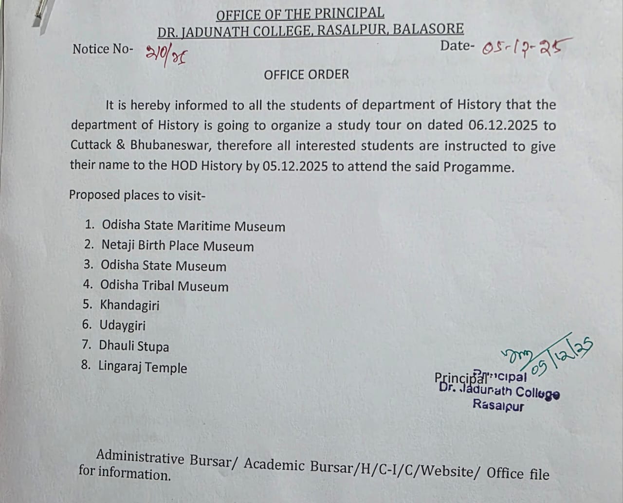 20 - 05-12-2025 > Study tour organized by Department of History of ( Study tour organized by Department of History on 06th December to Bhubaneswar and Cuttack )